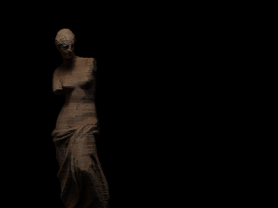 L'opera è realizzata in cartone ondulato riciclabile certificato FSC, è assemblata interamente a mano e fa parte della collezione cardboard 3d, che unisce tecnologia, design ed ecocompatibilità.